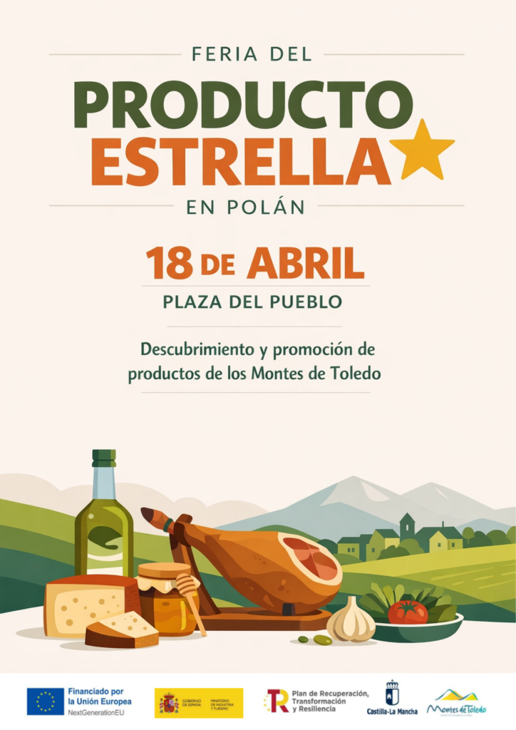 El 18 de abril de 2026 durante las 11:30 y las 19:00h, la Plaza del Ayuntamiento acogerá la Feria del Producto Estrella, un evento que reunirá lo mejor de los Montes de Toledo en un espacio interactivo. Aceite de oliva virgen extra, miel, quesos, embutidos, dulces y vinos estarán presentes en los stands de productores locales, donde además se permitirá la venta directa de productos.